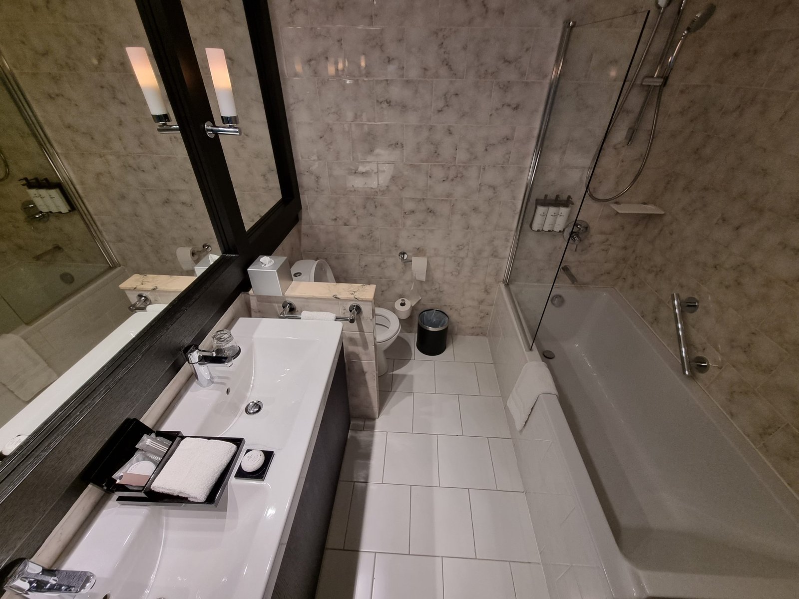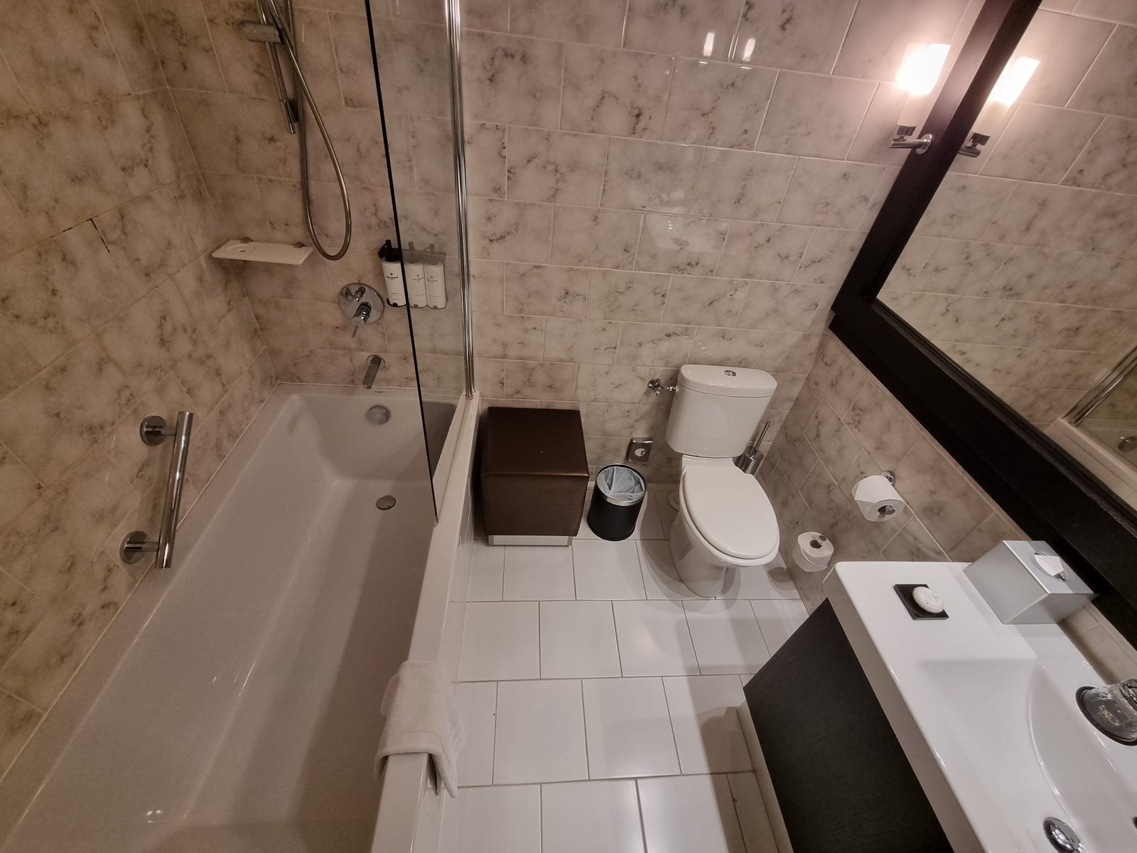 Check out the pictures; there’s nothing more to say. The bathroom had a bathtub-shower combo. In short, we were very happy with our room.