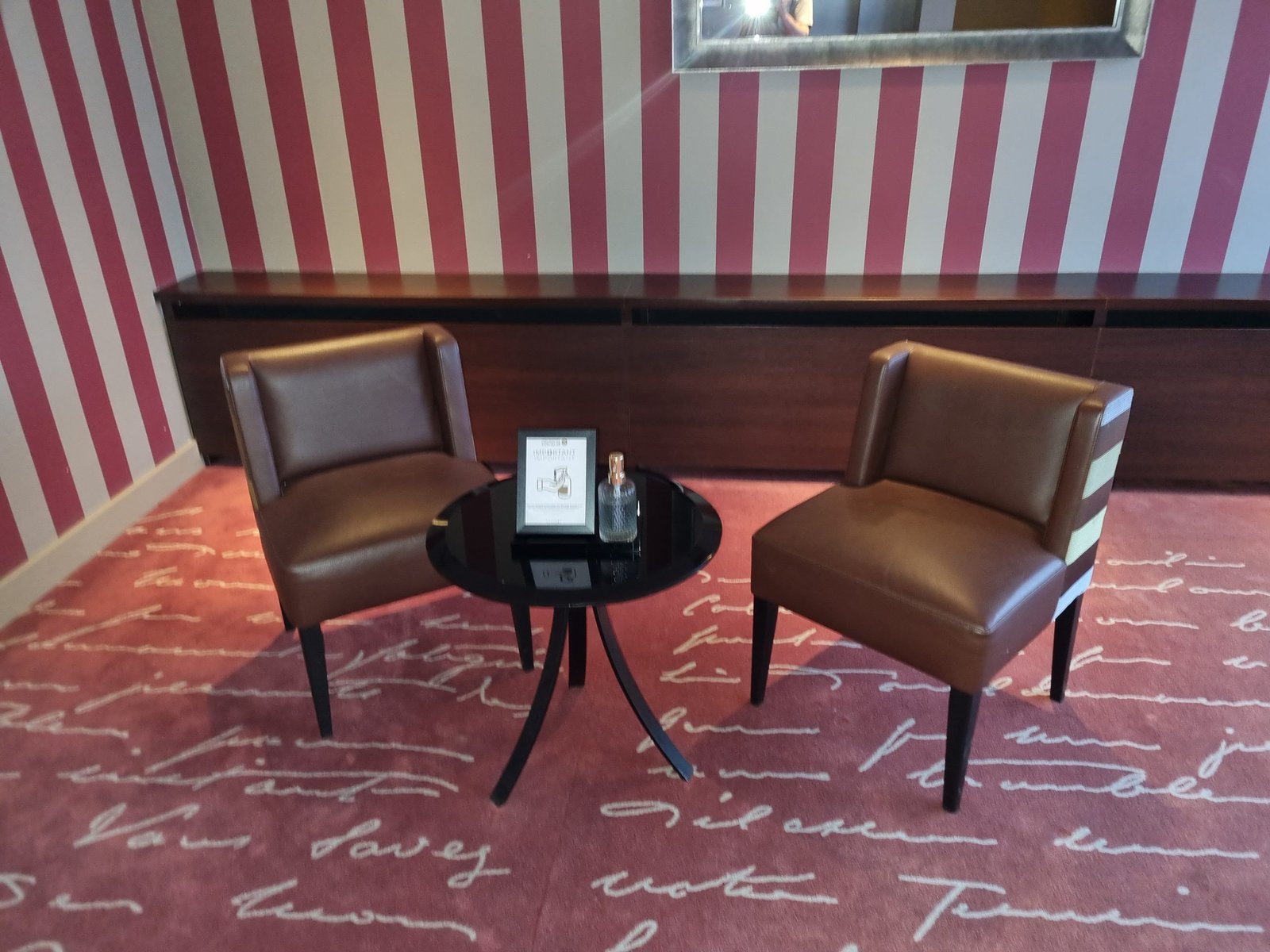 Some seating areas are available throughout the hotel. The fitness center is on the very small side of the spectrum and was closed when we visited.