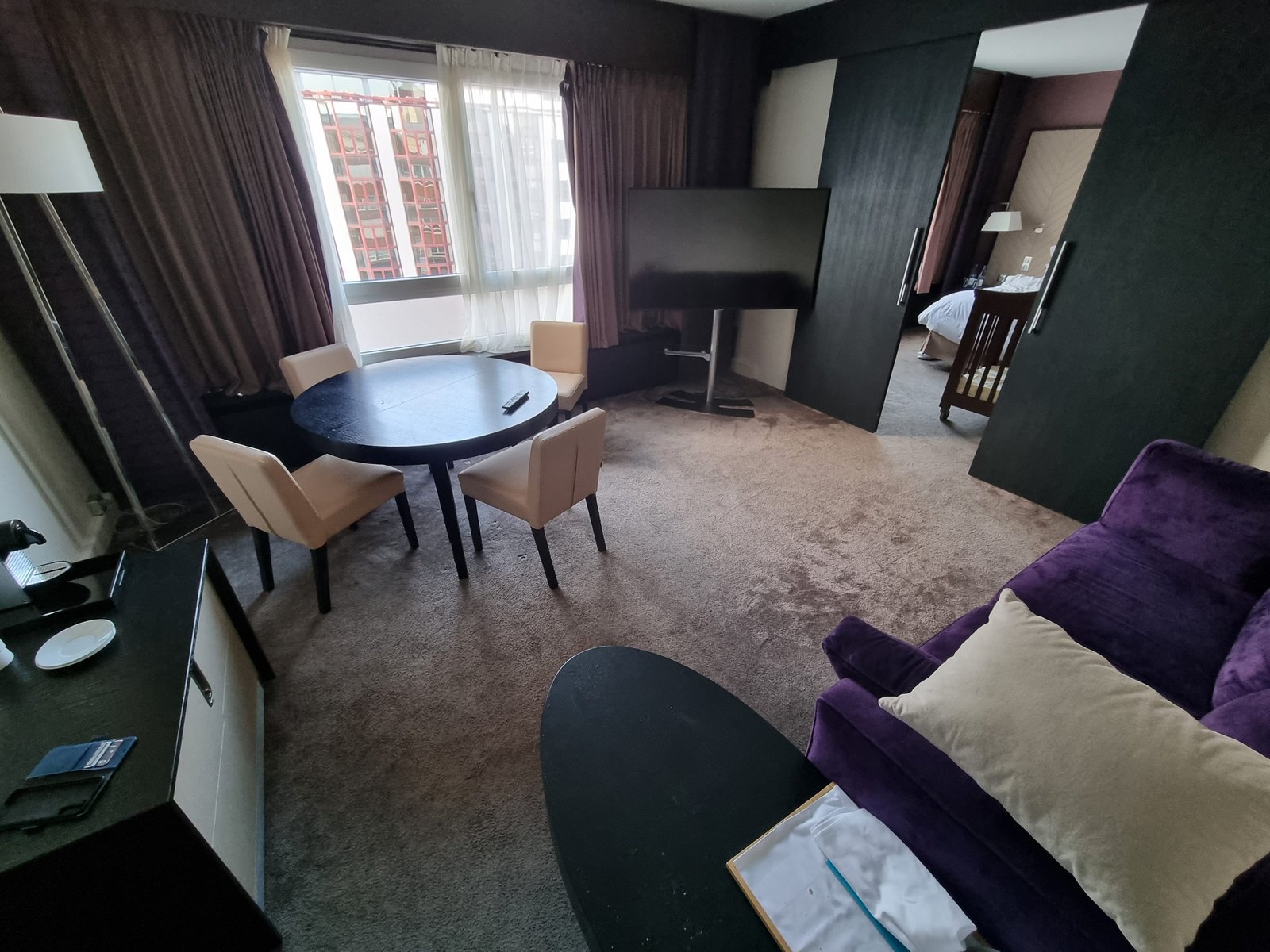 The suite we reserved was really nice. It had a living area separated from the bedroom by a privacy wall, a guest bathroom at the entrance, and a master bathroom in the bedroom. The style was what you’d expect from a Sofitel hotel, and all the necessary amenities were there.